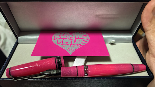 And, of course, it being Japan, the store hunt is a must. Maruzen doesn’t turn up at the show, and they have some exclusive inks themselves. Ancora, in Ginza, has some real video-game side-quest inks: one sold only when it’s raining, and another only around the day of the full moon! Itoya is too big to care: I feel like they know that whenever November rolls around, TIPS showgoers will come and fill their two buildings anyway. Even a well-travelled vendor like Bungubox will sometimes leave some pens behind. I had to go to their store in Jimbocho to run an errand for a friend, which involved this “Love Pink” Sailor Realo: