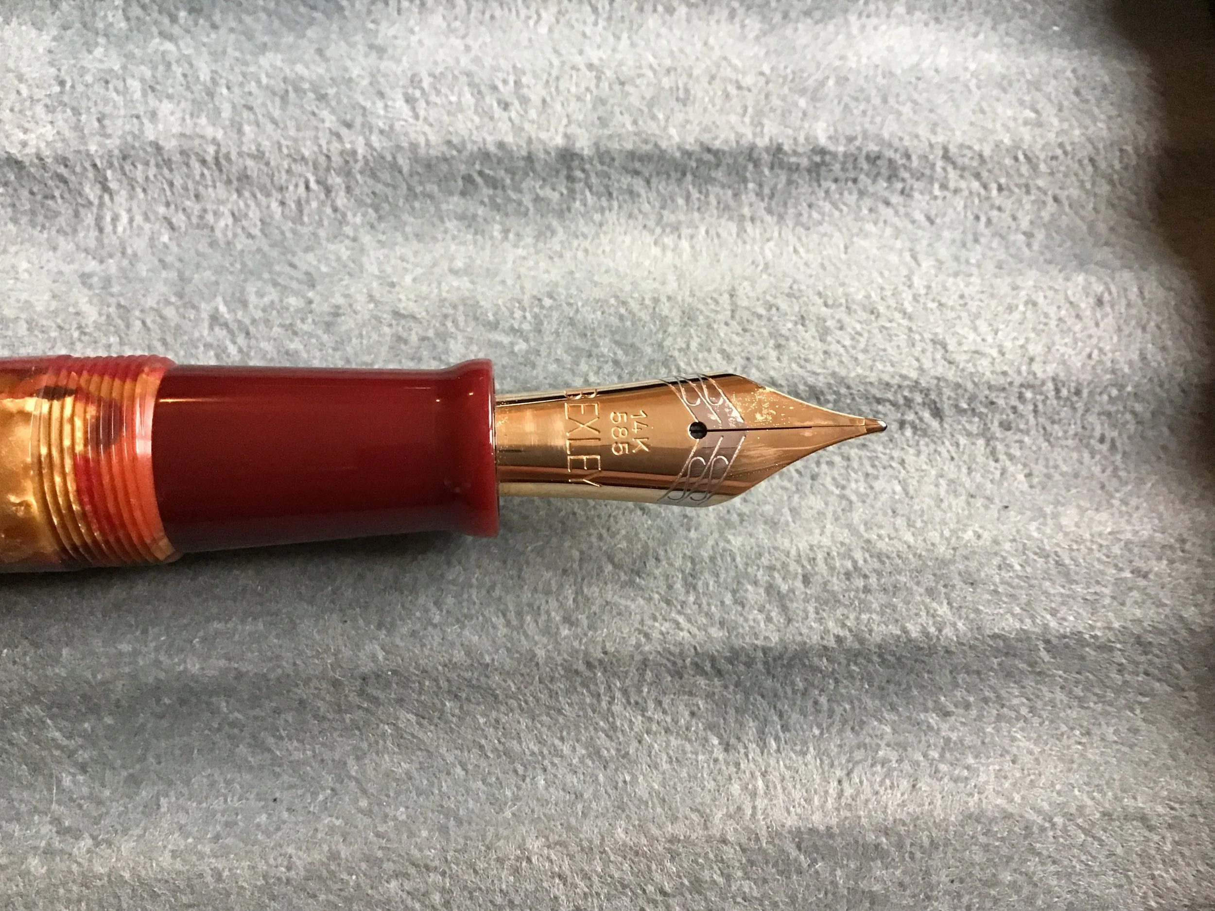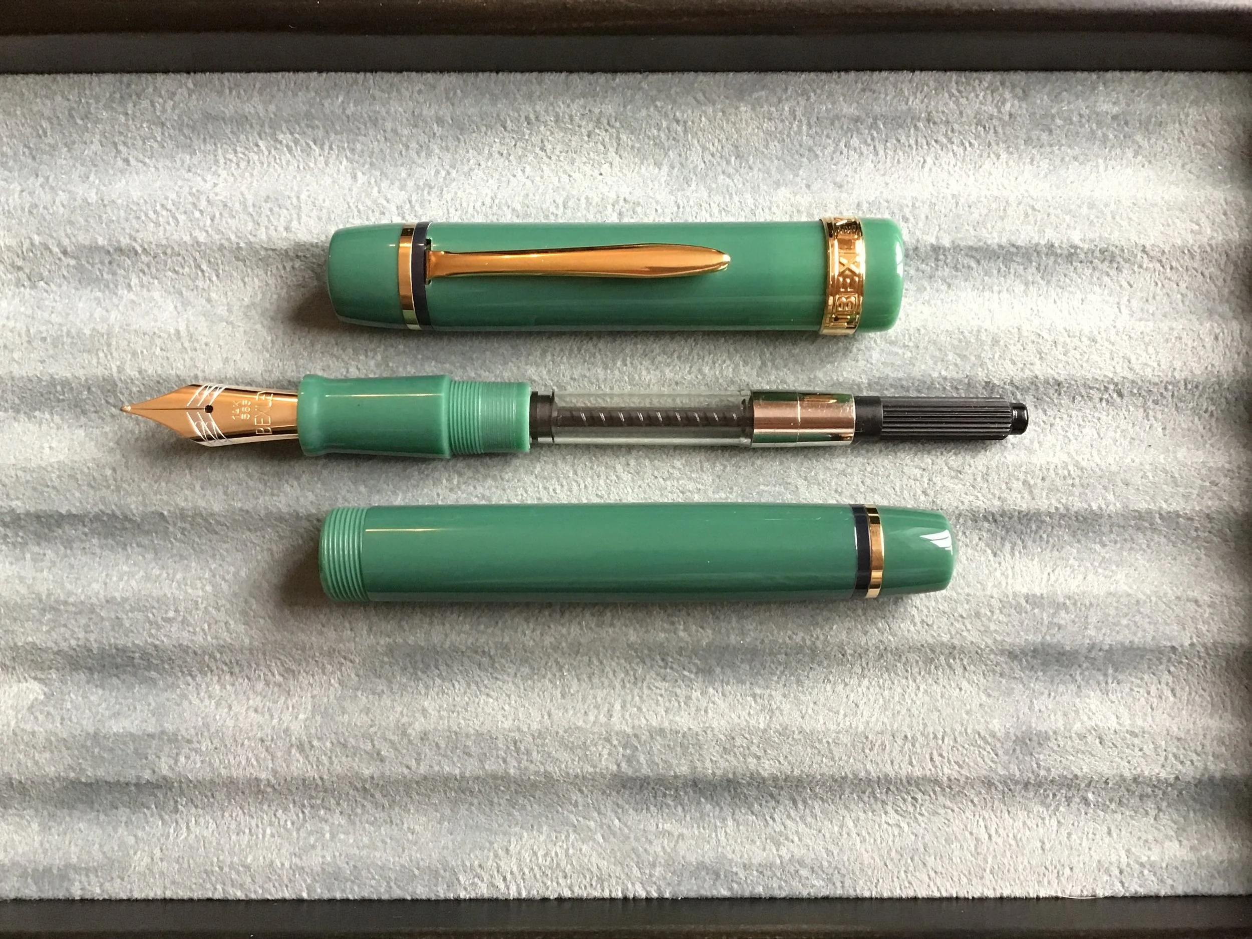 Nib: It is equipped with a 14k (585) solid gold Bexley medium nib (as confirmed by the label on the box) A smooth writer.